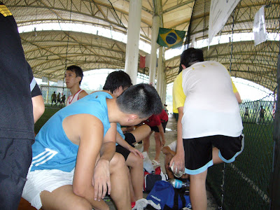 in 2hrs... my team played 5 games and won the 1st 4 consecutively, only to lose our due to Dave's lack of concentration... he was talking to the guys outside the ground and it was a totally open goal... after tat there wasn't enough time to clock in another game.. so just took some pics...